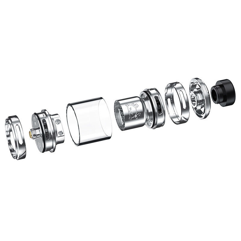 These The Hellvape Fat Rabbit 2 RTA features a 4ml liquid capacity with a straight glass (pre-installed) and includes a bubble glass that boosts capacity to 6.5ml. This dual-coil RTA has a 28mm diameter, utilizing both top and bottom airflow for customizable airflow settings and excellent flavor production, supported by honeycomb airflow design.
